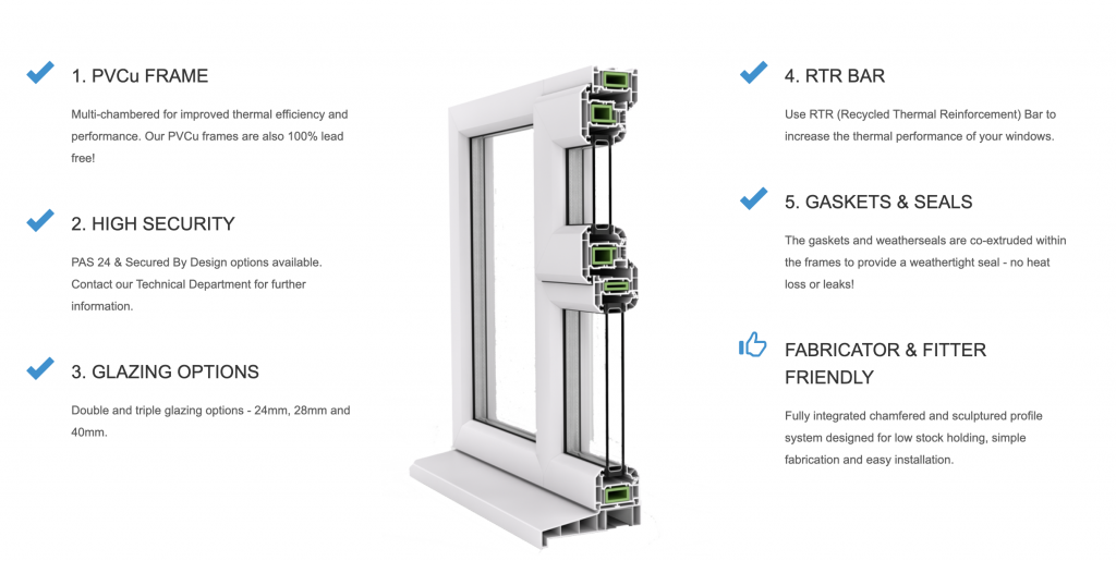 The ADVANCE 70 System is a fully-integrated, 70mm window and door profile system with both sculptured and chamfered variations. With double and triple glazing options the 5 chambered system has been intelligently designed to meet all requirements for improved thermal efficiency.